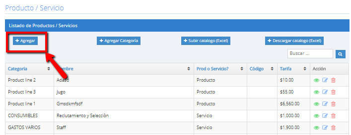 1) Dirígete a: CATÁLOGOS -> PRODUCTOS/ SERVICIOS