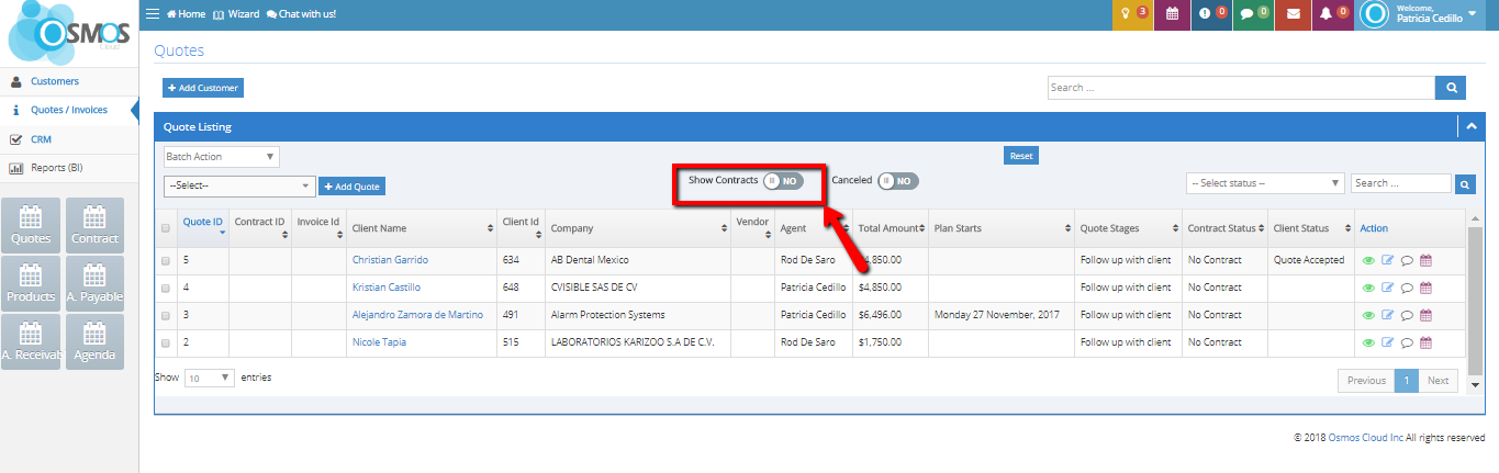 La otra opción que tienes es dentro de tu listado de cotizaciones/ facturas con el filtro contratos.