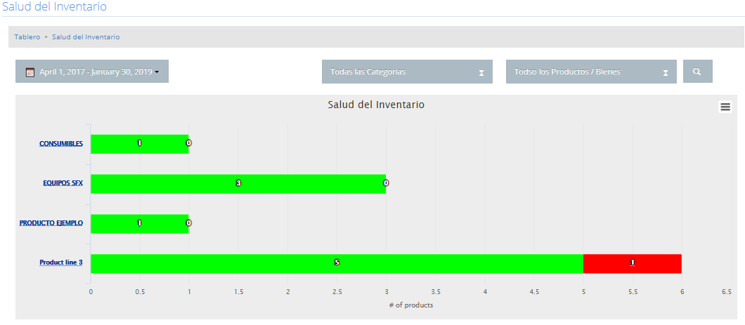 Haz clic en cada una de las categorías para ver los productos que conforman cada categoría y sus existencias dentro del inventario.